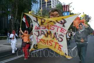 MEXICO, D.F. 19MARZO2005.- Integrantes de diversas organizaciones contra la guerra en Irak, marcharon del Hemiciclo a Juárez a la embajada de Estados Unidos, para conmemorar el segundo año de la ocupación de Irak. FOTO: Nelly Salas/CUARTOSCURO.COM