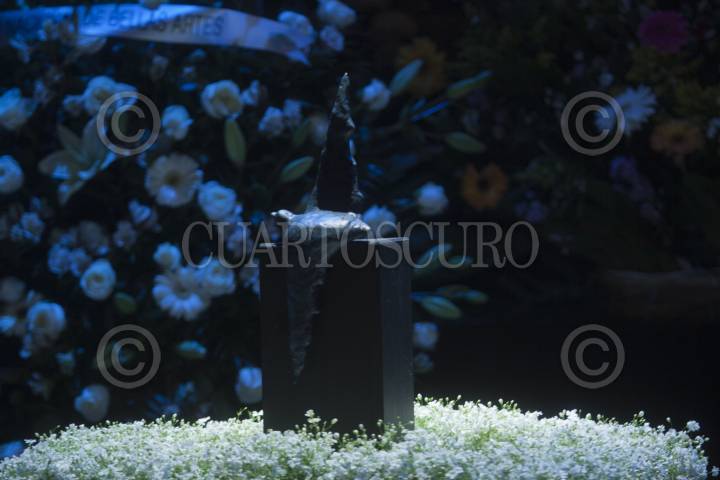 MÉXICO, D.F., 15UNIO2012.- El actor, Gerardo Taracena, ofreció unas palabras a colegas que lo acompañaron en el homenaje que se le realizó al actor Carlos Cobos, quien falleció a los 52 año vícitma de un derrame cerebral, en el Teatro el Galeón del Centro Cultural del Bosque. FOTO: FRANCISCO RODRÍGUEZ /CUARTOSCURO.COM