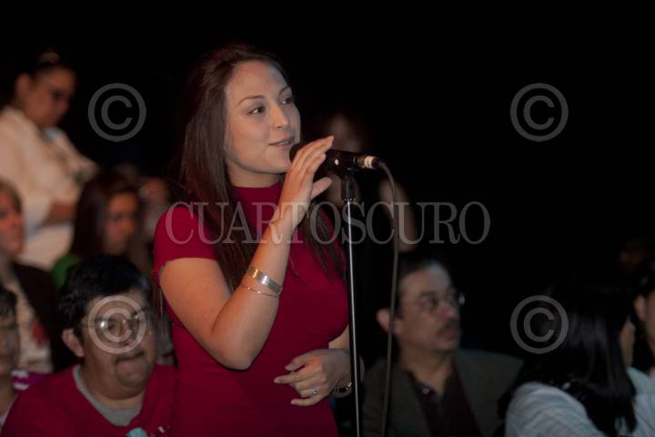 MÉXICO, D.F., 15UNIO2012.- El actor, Gerardo Taracena, ofreció unas palabras a colegas que lo acompañaron en el homenaje que se le realizó al actor Carlos Cobos, quien falleció a los 52 año vícitma de un derrame cerebral, en el Teatro el Galeón del Centro Cultural del Bosque. FOTO: FRANCISCO RODRÍGUEZ /CUARTOSCURO.COM