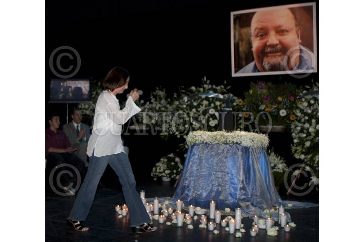 MÉXICO, D.F., 15UNIO2012.- El actor, Gerardo Taracena, ofreció unas palabras a colegas que lo acompañaron en el homenaje que se le realizó al actor Carlos Cobos, quien falleció a los 52 año vícitma de un derrame cerebral, en el Teatro el Galeón del Centro Cultural del Bosque. FOTO: FRANCISCO RODRÍGUEZ /CUARTOSCURO.COM