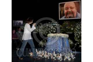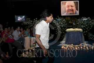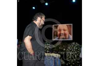 MÉXICO, D.F., 15UNIO2012.- El actor, Gerardo Taracena, ofreció unas palabras a colegas que lo acompañaron en el homenaje que se le realizó al actor Carlos Cobos, quien falleció a los 52 año vícitma de un derrame cerebral, en el Teatro el Galeón del Centro Cultural del Bosque. FOTO: FRANCISCO RODRÍGUEZ /CUARTOSCURO.COM