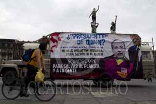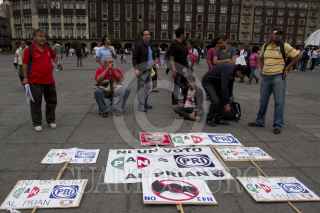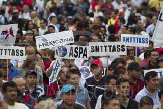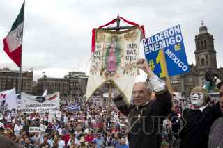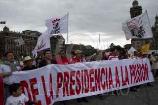 MÉXICO, D.F. 15JUNIO2012.-Integrantes de diversos sindicatos marcharon del Monumento a la Revolución al Zócalo, para manifestar su rechazo contra del Felipe Calderón Hinojosa, Presidente de México y de la realización del G20 en el estado de Baja California. FOTO: GUILLERMO PEREA /CUARTOSCURO.COM