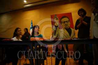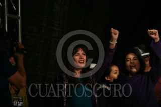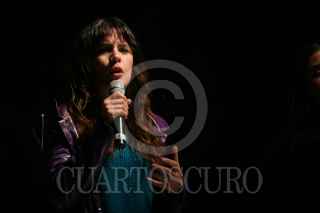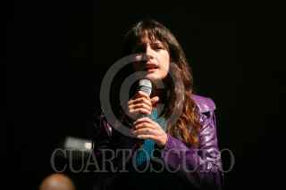 MÉXICO, D.F., 16JUNIO2012.- La lider estudiantil chilena, Camila Vallejo dirigió unas palabras a los asistentes al concierto #yosoy132 la noche de hoy ante un Zócalo llenó de mles de jovenes. La joven estufiante de Geografía confió en la madurez del movimiento para sortear divisiones y ataques. FOTO: FRANCISCO RODRÍGUEZ /CUARTOSCURO.COM
