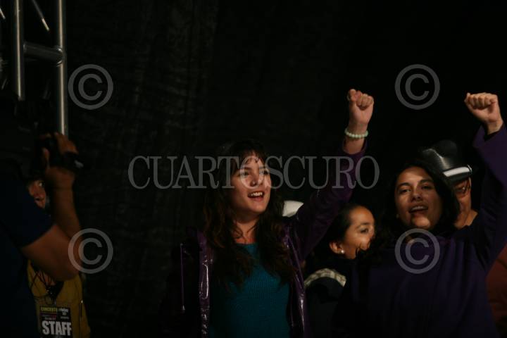 MÉXICO, D.F., 16JUNIO2012.- La lider estudiantil chilena, Camila Vallejo dirigió unas palabras a los asistentes al concierto #yosoy132 la noche de hoy ante un Zócalo llenó de mles de jovenes. La joven estufiante de Geografía confió en la madurez del movimiento para sortear divisiones y ataques. FOTO: FRANCISCO RODRÍGUEZ /CUARTOSCURO.COM