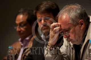 MÉXICO, D.F. 18JUNIO2012- En conferencia de Prensa, Javier Sicilia, acompañado de líderes de organizaciones civiles binacionales, anunciarón la llamada "Caravan for Peace", que recorrera mas de 20 ciudades de los Estados Unidos, dando comienzo el 12 de agosto en San Diego, California y concluyendo 10 de septiembre en Washington DC. La caravana será encabezada por Javier Sicilia, acompañado de al rededor de 60 organizaciones. Busca hacer un llamado a la sociedad civil de ese país para evitar el tráfico ilegal de armas a México, así como generar soluciones al consumo de drogas y las políticas de castigo que se han implementado FOTO: JUAN PABLO ZAMORA /CUARTOSCURO.COM