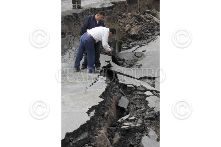 MÉXICO, D.F., 18JUNIO2012.- Bomberos de la Ciudad de México y elementos de Protección Civil del Distrito Federal, acordonaron la zona donde se registro un hundimiento de aproximadamente 25 metros en la calle Norte 29 y la avenida Industriales, en la colonia Moctezuma segunda sección. FOTO: SAÚL LÓPEZ /CUARTOSCURO.COM