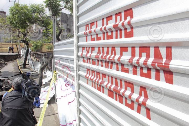MÉXICO, D.F., 18JUNIO2012.- Bomberos de la Ciudad de México y elementos de Protección Civil del Distrito Federal, acordonaron la zona donde se registro un hundimiento de aproximadamente 25 metros en la calle Norte 29 y la avenida Industriales, en la colonia Moctezuma segunda sección. FOTO: SAÚL LÓPEZ /CUARTOSCURO.COM