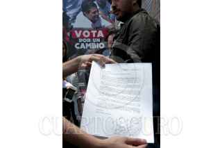 MÉXICO, D.F. 18JULIO2012.- Integrantes del #Yosoy132, acudieron a las instalaciones del Comité Ejecutivo Nacional del PRI, donde entregaron la invitación para que asista al debate el candidato a la presidencia Enrique Peña Nieto. FOTO: CUARTOSCURO.COM