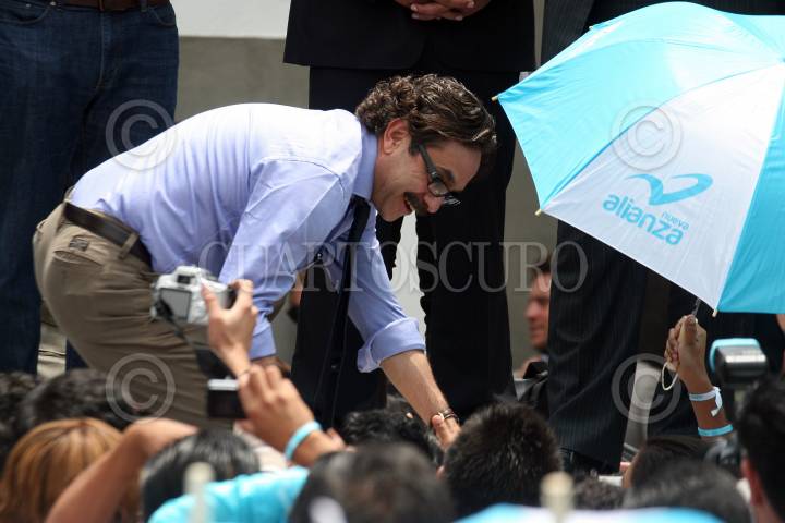 PUEBLA,PUE.,19JUNIO2012.- El candidato presidencial del partido Nueva Alianza, Gabriel Quadri; realizó mitin de cierre de campaña en la ciudad de Puebla el mediodía de hoy. FOTO: HILDA RÍOS /CUARTOSCURO.COM