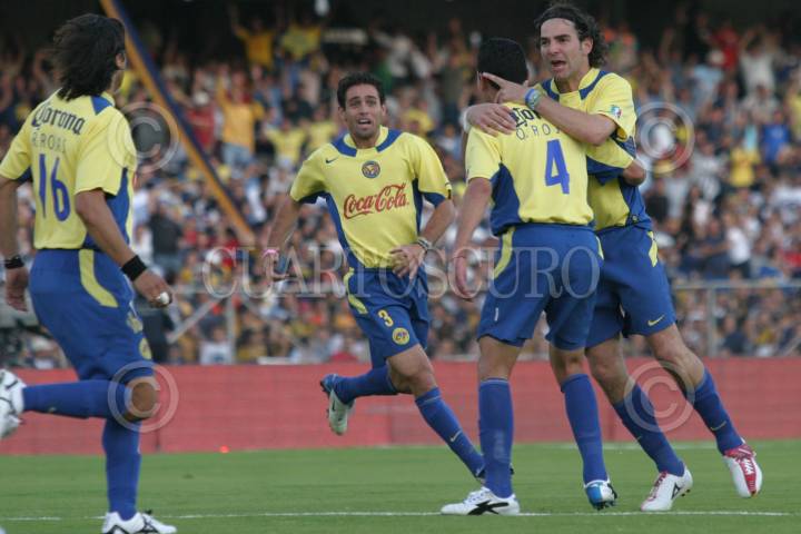 MEXICO, D.F. 20MARZO2005.- Las águilas del América vencieron 3 goles a 2 a los Pumas de la UNAM en el partido de la jornada 10 del torneo de clausura 2005 disputado en ciudad universitaria. En la gráfica Diego Alonso (Pumas) pelea un balón con Raúl Alberto Salinas (America). FOTO: Iván Stephens/CUARTOSCURO.COM