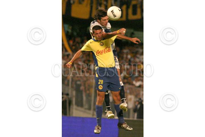 MEXICO, D.F. 20MARZO2005.- Las águilas del América vencieron 3 goles a 2 a los Pumas de la UNAM en el partido de la jornada 10 del torneo de clausura 2005 disputado en ciudad universitaria. En la gráfica Diego Alonso (Pumas) pelea un balón con Raúl Alberto Salinas (America). FOTO: Iván Stephens/CUARTOSCURO.COM