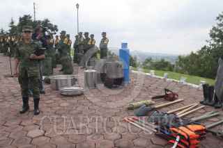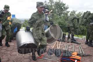 PUEBLA, PUEBLA, 19JUNIO2012.- La 6ta y 7ma Regimiento Blindada de Reconocimiento de la XXV Zona Militar del Ejército Mexicano, presentó ante medios de comunicación los ejercicios de evacuaciòn, asistencia y protección a la poblaciòn civil ante una eventual erupciòn del volcán Popocatépetl en el maerco del PLAN DNIII-E. Las acciones pretenden evacuar en menos cinco horas con apoyo de autoridades civiles y cerca de 500 elementos las comunidades de Santiago Xalitzintla, San Pedro Benito Juárez y San Nicolás de los Ranchos. Asi lo aseveró Marco Antonio Barrón Avalos, comandante de la XXV Zona Militar. FOTO: FRANCISCO RODRÍGUEZ /CUARTOSCURO.COM