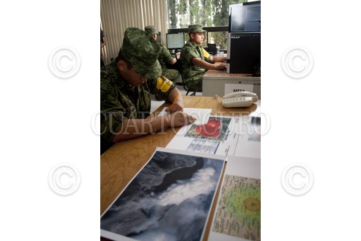 PUEBLA, PUEBLA, 19JUNIO2012.- La 6ta y 7ma Regimiento Blindada de Reconocimiento de la XXV Zona Militar del Ejército Mexicano, presentó ante medios de comunicación los ejercicios de evacuaciòn, asistencia y protección a la poblaciòn civil ante una eventual erupciòn del volcán Popocatépetl en el maerco del PLAN DNIII-E. Las acciones pretenden evacuar en menos cinco horas con apoyo de autoridades civiles y cerca de 500 elementos las comunidades de Santiago Xalitzintla, San Pedro Benito Juárez y San Nicolás de los Ranchos. Asi lo aseveró Marco Antonio Barrón Avalos, comandante de la XXV Zona Militar. FOTO: FRANCISCO RODRÍGUEZ /CUARTOSCURO.COM
