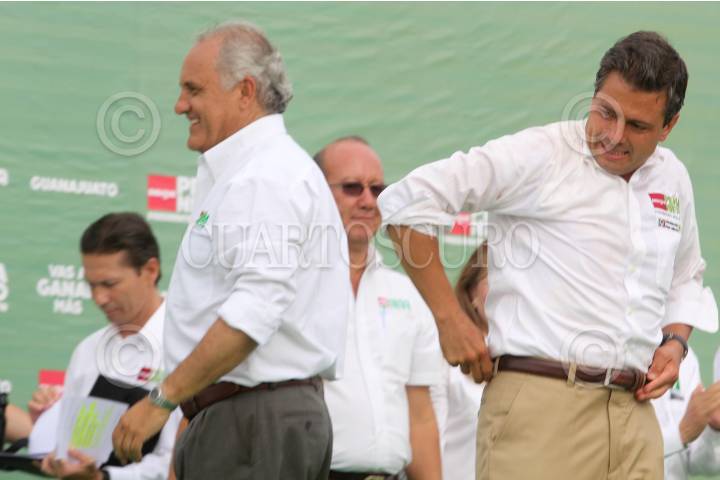 CELAYA, GUANAJUATO, 19JUNIO2012.- Enrique Peña Nieto, candidato de la coalición “Compromiso por México” del PRI y PVEM, acompañado del abanderado del PRI a la gubernatura del estado, Juan Ignacio Torres Landa, se reunieron con militantes e integrantes de las estructuras de su partido en Guanajuato, en la unidad deportiva Benavente. FOTO: SAÚL LÓPEZ /CUARTOSCURO.COM
