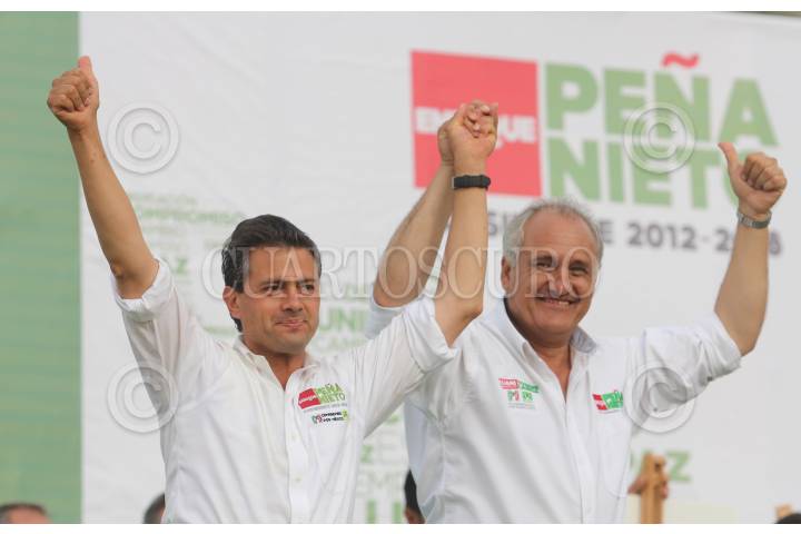 CELAYA, GUANAJUATO, 19JUNIO2012.- Enrique Peña Nieto, candidato de la coalición “Compromiso por México” del PRI y PVEM, acompañado del abanderado del PRI a la gubernatura del estado, Juan Ignacio Torres Landa, se reunieron con militantes e integrantes de las estructuras de su partido en Guanajuato, en la unidad deportiva Benavente. FOTO: SAÚL LÓPEZ /CUARTOSCURO.COM