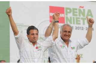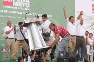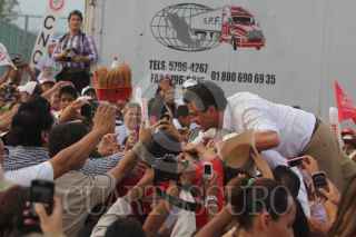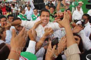 CELAYA, GUANAJUATO, 19JUNIO2012.- Enrique Peña Nieto, candidato de la coalición “Compromiso por México” del PRI y PVEM, acompañado del abanderado del PRI a la gubernatura del estado, Juan Ignacio Torres Landa, se reunieron con militantes e integrantes de las estructuras de su partido en Guanajuato, en la unidad deportiva Benavente. FOTO: SAÚL LÓPEZ /CUARTOSCURO.COM