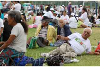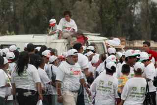 CELAYA, GUANAJUATO, 19JUNIO2012.- Simpatizantes de Enrique Peña Nieto, candidato de la coalición “Compromiso por México” del PRI y PVEM, se dieron un chapuzón en la alberca de la unidad deportiva Benavente, donde se realizó el mitin del abanderado tricolor. FOTO: SAÚL LÓPEZ /CUARTOSCURO.COM