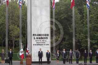 MÉXICO, D.F., 20JUNIO2012.- David Cameron, Primer Ministro de la Gran Bretaña e Irlanda del Norte, fue recibido en ceremonia de estado encabezada por el Jefe del Ejecutivo Felipe Calderón Hinojosa, en Monumento a Francisco I. Madero de la residencia oficial de Los Pinos. FOTO: MOISÉS PABLO /CUARTOSCURO.COM