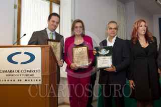 MÉXICO, D.F. 20JUNIO2012.- Miguel Ángel Mancera, candidato del Movimiento Progresista a la Jefatura de Gobierno del Distrito Federal, acompañado de Ródrigo Pérez Alonso, Diputado Federal y Rosi Orozco, candidata del PAN al Senado de la Republica, recibieron de parte de Adriana de la Fuente Gobernadora del Distrito 4170 del Club de Rotarios, un reconocimiento por su trabajo en contra de la trata de personas. FOTO: GUILLERMO PEREA /CUARTOSCURO.COM