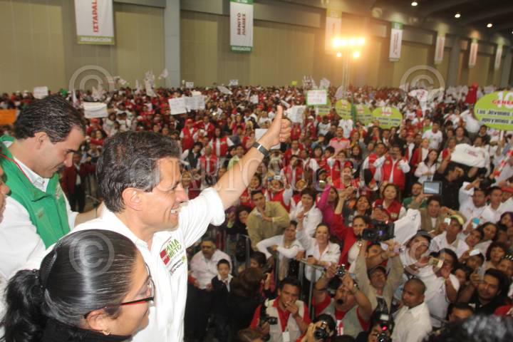 MÉXICO D.F., 20JUNIO2012.- Enrique Peña Nieto, candidato del PRI a al presidencia de la república, acompañado de Beatriz Paredes Rángel, candidata del PRI a jefa de gobierno del D.F., durante la reunión que sostuvieron con integrantes del transporte colectivo metro. FOTO: SAÚL LÓPEZ /CUARTOSCURO.COM