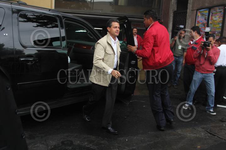 MÉXICO D.F., 20JUNIO2012.- Enrique Peña Nieto, candidato del PRI a al presidencia de la república, acompañado de Beatriz Paredes Rángel, candidata del PRI a jefa de gobierno del D.F., durante la reunión que sostuvieron con integrantes del transporte colectivo metro. FOTO: SAÚL LÓPEZ /CUARTOSCURO.COM