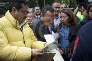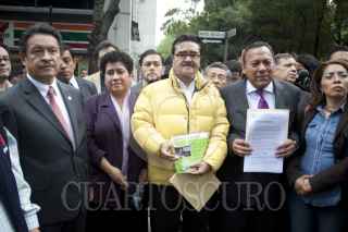 MÉXICO, D.F., 21JUNIO2012.- Los perredistas Guadalupe Acosta Naranjo, diputado federal, Jesús Zambrano, dirigente nacional del partido y Carlos Navarrete, senador, acudieron a la PGR para interponer una denuncia en contra de la campaña del candidato presidencial priista Enrique Peña Nieto. FOTO: MOISÉS PABLO /CUARTOSCURO.COM