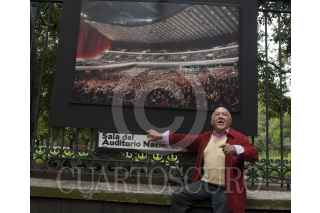 MÉXICO, D.F., 22JUNIO2012.- El cantautor, Óscar Chávez fué invitado especial la mañana de hoy en la inuaguración de la exposición fotográfica "Auditorio Nacional 60 años" donde se haceun recorrido gráfico del recinto que ah albergado a figuras de la talla de Louis Amstrong y Ringo Starr. FOTO: FRANCISCO RODRÍGUEZ /CUARTOSCURO.COM