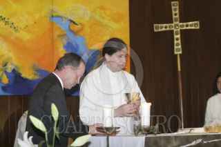 MÉXICO, D.F., 22JUNIO2012.- Los panistas Cecilia Romero y José Luis Luege, asistieron a la misa ofrecida en honor de Santo Tomás Moro en la parroquía de Vito Alessio Robles, santo Tomás Moro, es el santo al que se encomiendan principalmente los políticos. FOTO: JUAN PABLO ZAMORA /CUARTOSCURO.COM