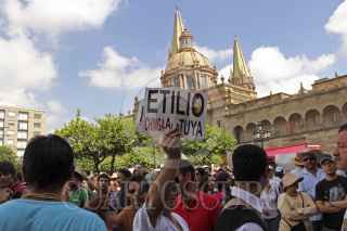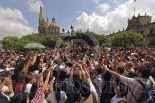 GUADALAJARA, JALISCO, 23JUNIO2012.- Se llevo a cabo una marcha por las principales calles de la ciudad para gritar la mega mentada de madre con destino al gobernador Emilio González Márquez, la movilización culmino en la Plaza de Armas. Esta demostración en contra del mandatario rompió el Récord Guinnes y fue organizado por la ciudadanía con la finalidad de regresarle la cortesía al mandatario, quien le mento la madre a la sociedad en abril de 2008. FOTO: FERNANDO CARRANZA GARCÍA /CUARTOSCURO.COM