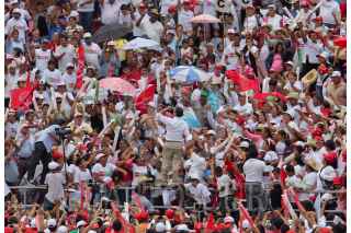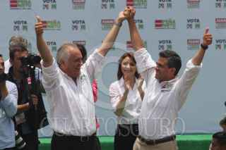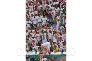 IRAPUATO, GUANAJUATO, 23JUNIO2012.- Simpatizantes de Enrique Peña Nieto, candidato de la coalición “Compromiso por México” del PRI y PVEM, asistieron al estadio Sergio León Chávez, donde se realizó el cierre de campaña del candidato a la gubernatura Juan Ignacio Torres Landa. FOTO: SAÚL LÓPEZ /CUARTOSCURO.COM