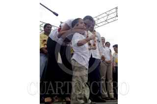 TUXTLA GUTIÉRREZ, CHIAPAS, 23JUNIO2012.- María Elena Orantes, candidata a la gubernatura del Chiapas por el Movimiento Progresista, besa a el pequeño Jesús Ernesto López Gutiérrez, hijo menor del candidato a la Presidencia Andrés Manuel López Obrador, durante el cierre de campaña estatal del tabasqueño. FOTO: ELEAZAR TORRES /CUARTOSCURO.COM
