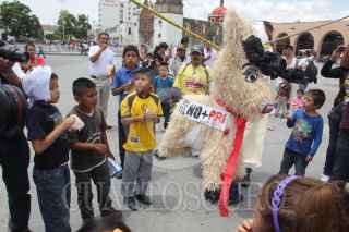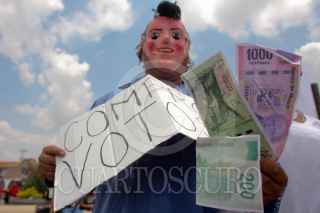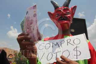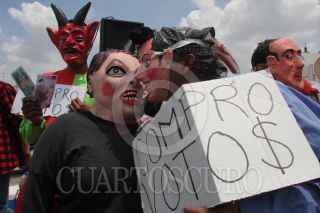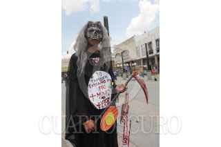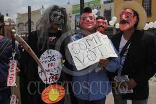 IRAPUATO, GUANAJUATO, 23JUNIO2012.- Integrantes de movimiento universitario “Yo Soy 132” se manifestaron con un carnaval en contra del candidato a la presidencia Enrique Peña Nieto, en la plaza principal de Irapuato, FOTO: SAÚL LÓPEZ /CUARTOSCURO.COM