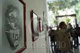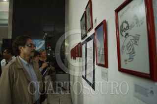 MÉXICO, D.F., 23JUNIO2012.- Gabriel Quadri, candidato a la presidencia de la República inaguró en la Sede del Nueva Alianza la exposición "La vida de quadritos", integrada por más de 3O imágenes de caricaturistas como: Magú, Alarcón, Qucho, Garci, Osvaldo, entre otros. FOTO: PEDRO ANZA /CUARTOSCURO.COM