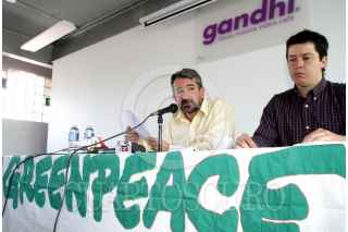 MEXICO, D.F. 22MARZO2005.- Alejandro Calvillo, director de Greenpeace México, y Héctor Magallón, coordinador de la campaña de bosque de Greenpeace, anunciaron su desacuerdo contra la destrucción del patrimoniio histórico y natural de Tulum, Quintana Roo, al igual que la INAH y Semarnat. FOTO: Sandra Perdomo/CUARTOSCURO.COM