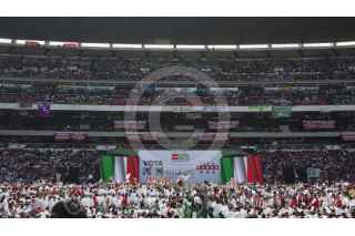 MÉXICO, D.F., 24JUNIO2012.- Basura proselitista del candidato tricolor Enrique Peña Nieto, quien cerró su campaña regional en el Estadio Azteca. FOTO: MOISÉS PABLO /CUARTOSCURO.COM