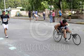VILLAHERMOSA, TABASCO, 24JUNIO2012.- Alrededor de tres mil cuatrocientos atletas de diversos puntos del país se dieron cita para competir en la edición XII de la Carrera Atlética la Victoria, donde el ex olímpico mexicano Rodolfo Gómez obtuvo el triunfo en la categoría libre de diez kilómetros que se recorrieron por calles y avenidas principales de esta ciudad capital. FOTO: MARCO POLO GUZMÁN HERNÁNDEZ/CUARTOSCURO.COM
