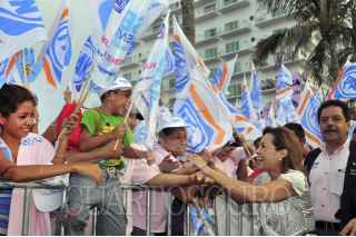 VERACRUZ, VERACRUZ, 24JUNIO2012.- Josefina Vázquez Mota, candidata a la presidencia de la República por el Partido Acción Nacional (PAN), cerró su campaña en esta ciudad, ante miles de simpatizantes. FOTO: ESPECIAL /CUARTOSCURO.COM