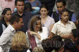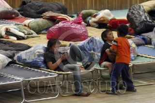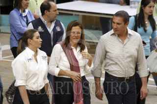PUEBLA, PUEBLA, 26JUNIO2012.- Margarita Zavala, Presidenta Nacional de DIF acompañada por el gobernador de Puebla, Rafael Moreno Valle y su esposa Martha Erika Alonso, visitaron el albergue que se instaló en San Martín Texmelucan tras el desbordamiento del río Atoyac. FOTO: HILDA RÍOS /CUARTOSCURO.COM