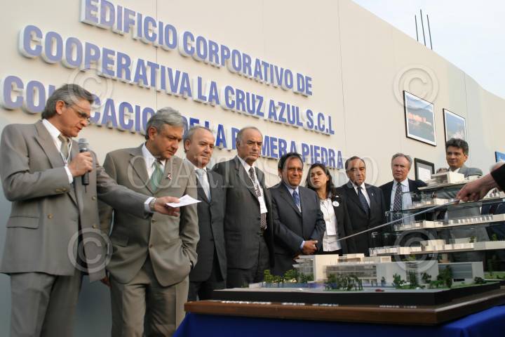 MEXICO, D.F. 28MARZO2005.- A la derecha, Andrés Manuel López Obrador, jefe de Gobierno capitalino, se despide de los asistentes a la ceremonia de colocación de la primera piedra del edificio corporativo Cruz Azul, ubicado en Av. Gran Sur. FOTO: Sandra Perdomo/CUARTOSCURO.COM