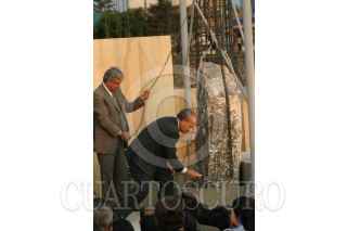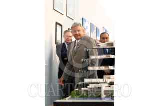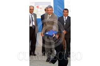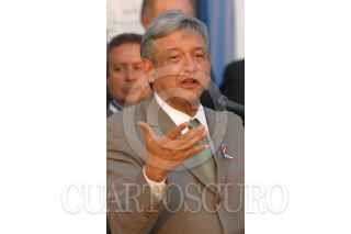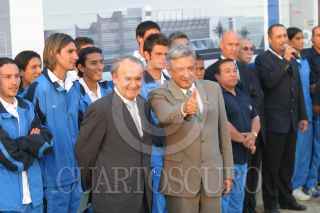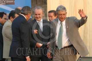 MEXICO, D.F. 28MARZO2005.- A la derecha, Andrés Manuel López Obrador, jefe de Gobierno capitalino, se despide de los asistentes a la ceremonia de colocación de la primera piedra del edificio corporativo Cruz Azul, ubicado en Av. Gran Sur. FOTO: Sandra Perdomo/CUARTOSCURO.COM