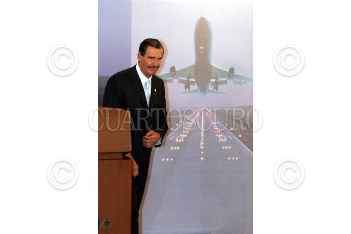 MEXICO, D.F. 29MARZO2005.- El presidente Vicente Fox, al tèrmino de su intervención en la ceremonia de ¨Desincorporación Aeroportuaria¨, realizada en el salón Manuel Ávila Camacho. FOTO: Sandra Perdomo/CUARTOSCURO.COM