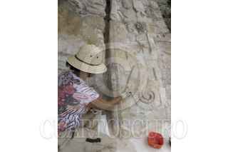 VALLE DE EDZNA, CAMPECHE, 28JUNIO2012.- Especialistas del INAHr realizaron trabajos de preservación de un par de mascarones mayas modelados en estuco. FOTO: DIANA ARANO /INAH /CUARTOSCURO.COM