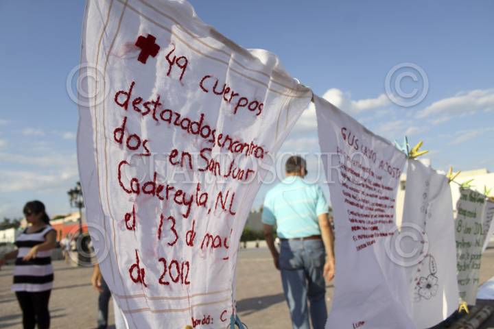 MONTERREY, NUEVO LEÓN, 30JUNIO2012.- Un grupo de madres de desaparecidos y secuestrados se reúnen cada semana en el centro de la ciudad de Monterrey para mostrar los tejidos que cuentan la historia de las víctimas. Bordando por la paz es un colectivo que inició en Guadalajara. FOTO: GABRIELA PÉREZ MONTIEL /CUARTOSCURO.COM