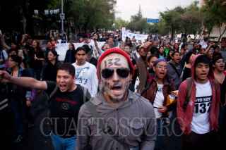 MÉXICO, D.F. 30JUNIO2012.- Integrantes del grupo #YoSoy132 marcharon desde Tlatelolco a las instalaciones de Televisa y de ahí al Zocalo, donde dieron su postura respecto a las elecciones. Reiteraron su integridad como organización independiente. A la marcha les apoyaron diversas organizaciones sociales. Anunciaron que acamparan en el monumento a la Revolución para desde ahi organizarse y participar comp observadores en las elecciones FOTO: CHRISTIANN DAVIS /CUARTOSCURO.COM