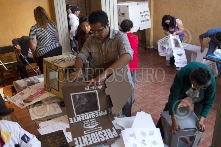 MÉXICO, D.F. 01JULIO2012.- A partir de las 8:00 comenzó la instalación de las casillas electorales; decenas de personas esperan para emitir su voto y dar inicio a la jornada electoral. FOTO: GUILLERMO PEREA /CUARTOSCURO.COM