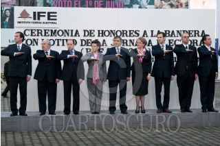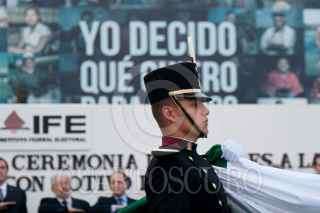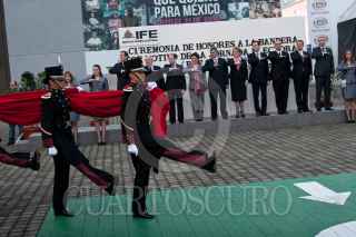 MÉXICO, D.F., 01JULIO2012.- Con una ceremonia de Honores a la Bandera, dieron inicio los trabajos durante la jornada electoral en la sede del Instituto Federal Electoral. FOTO: ADOLFO VLADIMIR /CUARTOSCURO.COM