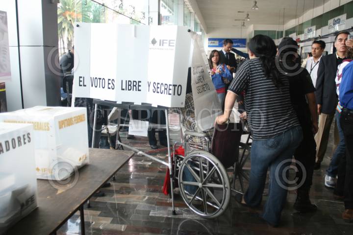 MÉXICO, D.F., 01JULIO2012.- La casilla especial instalada en la Central Camionera del Sur se saturó de votantes y por mucho rebasa las 750 boletas disponibles, apesar de la fila que se organizó, varias personas intentaron "colarse" sin embargo fueron invitadas a salir por elementos de seguridad. FOTO: FRANCISCO RODRÍGUEZ /CUARTOSCURO.COM