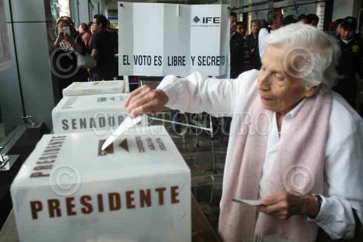 MÉXICO, D.F., 01JULIO2012.- La casilla especial instalada en la Central Camionera del Sur se saturó de votantes y por mucho rebasa las 750 boletas disponibles, apesar de la fila que se organizó, varias personas intentaron "colarse" sin embargo fueron invitadas a salir por elementos de seguridad. FOTO: FRANCISCO RODRÍGUEZ /CUARTOSCURO.COM