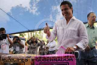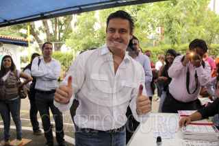 GUADALAJARA, JALISCO, 01JULIO2012.- Jorge Aristóteles Sandoval, candidato del PRI al gobierno del estado emitió su voto en la casilla de la colonia Independencia Oriente. El candidato es favorito para ganar las elección. FOTO: FERNANDO CARRANZA/CUARTOSCURO.COM