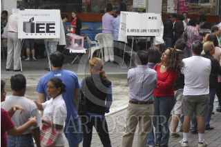 CUERNAVACA, MORELOS, 01JULIO2012.- Decenas de personas esperan en largas filas para poder realizar su voto en las casillas que instalo el Instituto Estatal Electoral de Morelos. FOTO: ALMA LAFAYET /CUARTOSCURO.COM